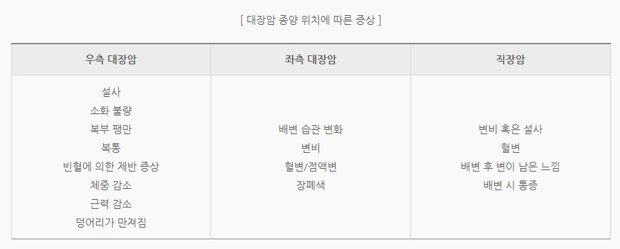 대장암 초기에는 눈에 띄는 증상은 보이지 않습니다. 증상이 나타났다면 이미 병이 진행되었을 경우가 대부분입니다.